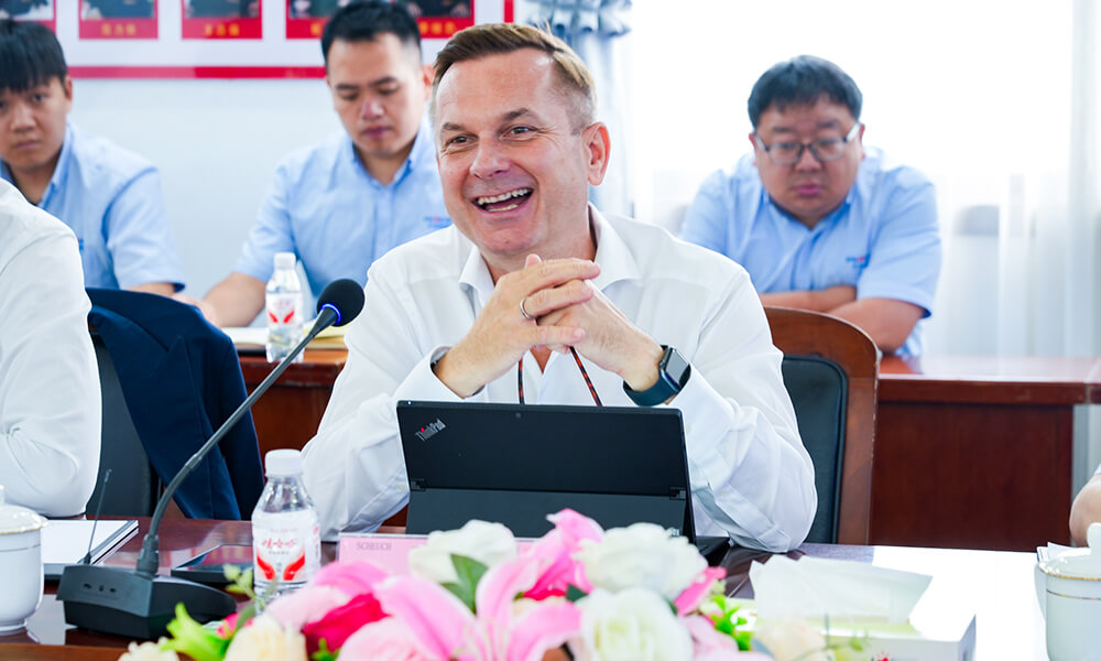 7月16日,奧地利SCHEUCH GmbH(蕭氏集團(tuán))CEO 和采購總監(jiān),安德里茨金屬集團(tuán)總裁首席戰(zhàn)略官等領(lǐng)導(dǎo)一行蒞臨長城集團(tuán)考察交流,長城集團(tuán)董事長王紀(jì)中、總經(jīng)理王兆斌、長城機(jī)械總經(jīng)理趙化沖熱情接待并陪同。