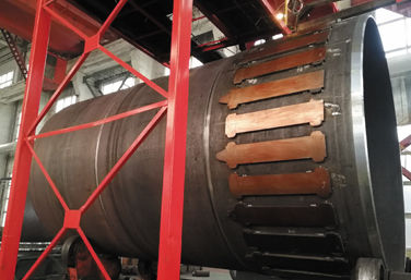 組合式揚(yáng)料裝置,密集交叉、定向返回、多點(diǎn)重疊等措施組合。煤泥往復(fù)蠕動(dòng)、雨?duì)盍夏幌侣?,延長(zhǎng)滯空停留時(shí)間,增加水分蒸發(fā)速度和強(qiáng)度。滾筒兩端魚鱗片密封,避免漏氣、漏料。