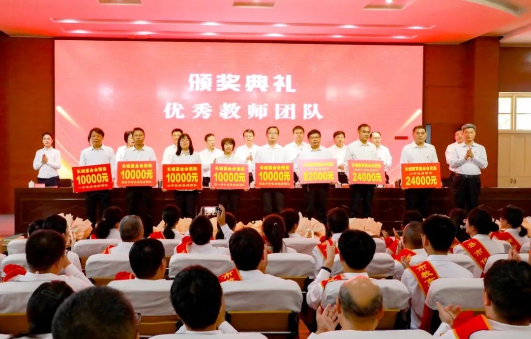教育是國之大計(jì),教師是國之棟梁。在邁向全面小康、追逐中國夢的偉大征程中,教師們起到了至關(guān)重要的作用。作為輝縣市的助教助學(xué)基金—長城教育基金的發(fā)起人王紀(jì)中也在大會(huì)上向市一中、六中、二中、一初中和職業(yè)中專的優(yōu)秀教師團(tuán)隊(duì)代表發(fā)放了獎(jiǎng)金,對今年高考取得優(yōu)異成績的同學(xué)發(fā)放了助學(xué)金。