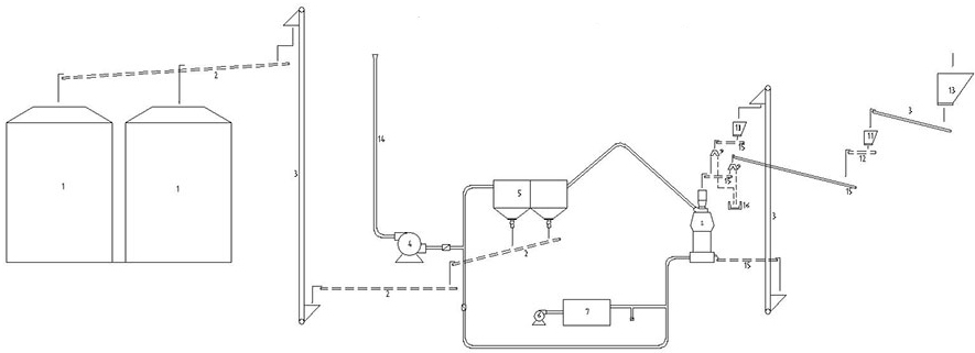 濕鎳渣經(jīng)定量給料稱計量后由膠帶輸送機直接送入立式輥磨機喂料口,經(jīng)烘干兼粉磨后的鎳渣粉經(jīng)長袋脈沖除塵器收集后由空氣輸送斜槽、提升機輸送進入鎳渣粉庫,立磨機吐渣經(jīng)膠帶輸送機、斗式提升機重新喂入立磨機,在吐渣膠帶輸送機上設置電磁除鐵器進行除鐵。